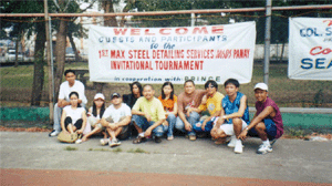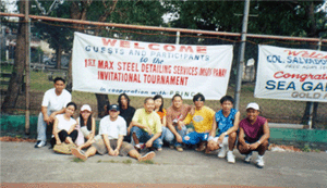 | Eng'r. Jose June Sobrevega with Maxsteel Detailing Service Staff during the Tournament Opening Ceremonies. |